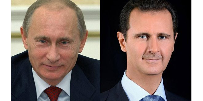 تبادل السيد الرئيس بشار الأسد والرئيس فلاديمير بوتين رئيس جمهورية روسيا الاتحادية اليوم برقيتي تهنئة بمناسبة حلول العام الجديد أكدا فيهما على تطوير العلاقات الثنائية لما فيه خير ومصلحة البلدين.