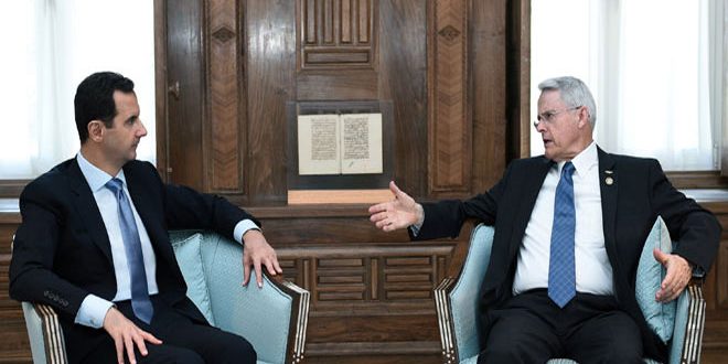 الرئيس الأسد للسناتور بلاك: الهجمات الإرهابية التي ضربت مناطق عدة من العالم تثبت أن الإرهاب لا حدود له والقضاء عليه يتطلب جهداً دولياً مشتركاً