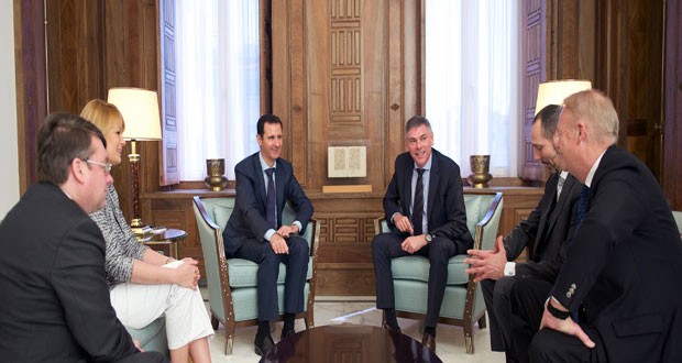 وتمحور الحديث خلال اللقاء حول ما يحدث في سورية حيث أكد الرئيس الأسد أن واقع ما يجري على الأرض مختلف تماما عما يصوره بعض السياسيين ووسائل الإعلام الذين يشوهون الرأي العام في بلدانهم خدمة لرؤى قاصرة ومصالح ضيقة لا تخدم شعوبهم مشيرا إلى أن الوفود التي تزور سورية وتلتقي السوريين من شأنها أن تسهم في تصويب الرأي العام لشعوبها حول واقع الحرب التي يخوضها الشعب السوري ضد الإرهاب.