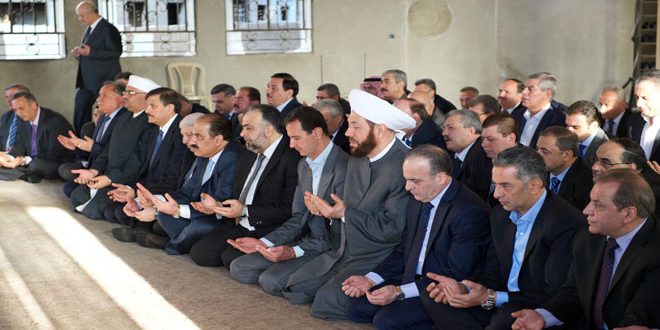 وأدى الصلاة مع الرئيس الأسد القيادة والحكومة وعدد من علماء الدين الإسلامي وأعضاء مجلس الشعب مؤتمين بفضيلة الشيخ عدنان الافيوني مفتي دمشق وريفها.
