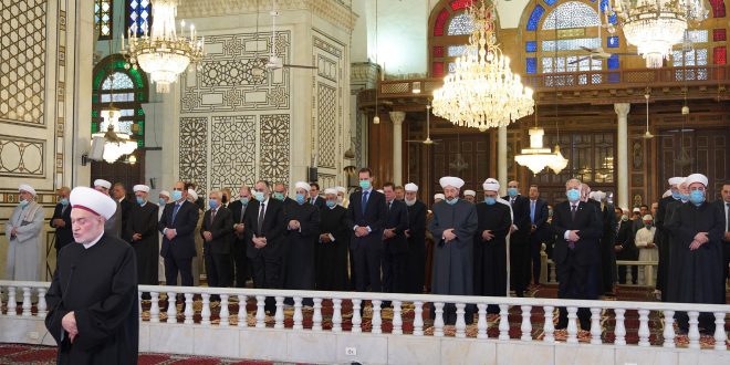أدى السيد الرئيس بشار الأسد صباح اليوم صلاة عيد الفطر السعيد في رحاب الجامع الأموي الكبير بدمشق.