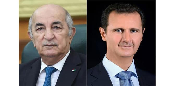 أرسل السيد الرئيس بشار الأسد برقية تعزية وتضامن للرئيس الجزائري عبد المجيد تبون وللشعب الجزائري الشقيق بضحايا الحرائق الضخمة التي اندلعت في عدة مناطق من البلاد خلال الأيام الماضية سائلاً الله أن يحفظ الجزائر ويجنبها كل مكروه.