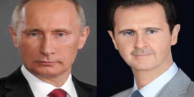 تلقى السيد الرئيس بشار الأسد اليوم برقية تهنئة من الرئيس الروسي فلاديمير بوتين بمناسبة النصر المؤزر الذي حققته قواتنا المسلحة الباسلة بفك الطوق عن أهلنا في مدينة دير الزور المحاصرة من قبل تنظيم داعش الإرهابي منذ ما يقارب ثلاث سنوات وأعرب عن استعداده لمواصلة تقديم الدعم النشيط للقوات المسلحة السورية في حربها على الإرهاب.