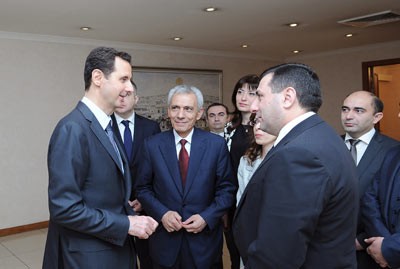 وعبر الرئيس الأسد عن تقديره لمواقف الرئيس سركيسيان الموضوعية والداعمة لاستقرار سورية وحذر من مخاطر الإرهاب والفكر المتطرف الذي يدعمه الغرب وبعض الدول الاقليمية والذي يهدد بتفتيت منطقتنا التي تميزت بتنوع ثقافي واجتماعي عبر تاريخها مشددا على دور البرلمانيين في توضيح هذه المخاطر أمام المنابر الدولية وتوحيد الجهود لمواجهتها.