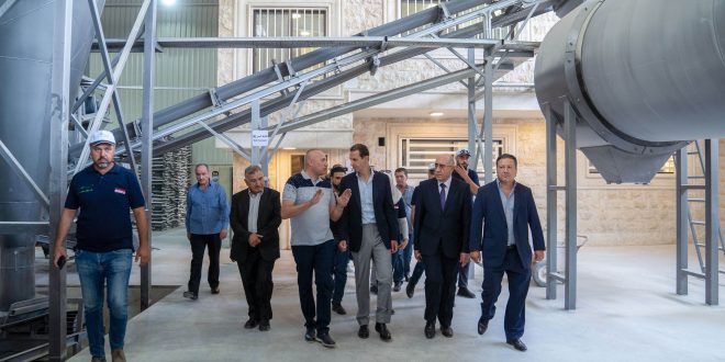 زار السيد الرئيس بشار الأسد اليوم عدداً من المنشآت والمعامل في مدينة عدرا الصناعية بريف دمشق والتي نشأت تحت ظروف الحرب والحصار ونجح أصحابها رغم كل التحديات والصعوبات.