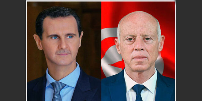 هنأ السيد الرئيس بشار الأسد، الرئيس قيس سعيد بمناسبة فوزه في الانتخابات الرئاسية التونسية.