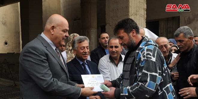 تقديراً لجهودهم المبذولة لإعادة تأهيل مطحنة تشرين ورفع طاقتها الطحنية الفعلية حتى وصلت لـ 400 طن يومياً وجه السيد الرئيس بشار الأسد بمنح مكافأة مالية لكل عامل من عمال المطحنة سلمها لهم وزير التجارة الداخلية وحماية المستهلك عمرو سالم في موقع المطحنة في عدرا.