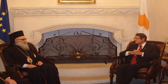 وشدد أناستاسياذيس خلال استقباله اليوم في القصر الرئاسي في نيقوسيا بطريرك أنطاكية وسائر المشرق للروم الأرثوذوكس البطريرك يوحنا العاشر على عمق العلاقة التاريخية التي تربط بين الشعبين القبرصي والسوري.