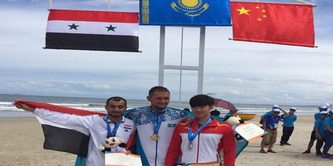 أحرز لاعب منتخب سورية للسباحة صالح محمد اليوم المركز الثالث والميدالية البرونزية لسباق 10 كم في الدورة الآسيوية الشاطئية الخامسة المقامة في فيتنام.