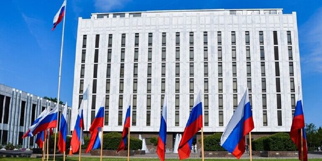 ونقل موقع روسيا اليوم عن السفارة قولها في بيان نشرته على خلفية تصريحات الإدارة الأمريكية بأن سلوك روسيا لا يتوافق مع صفة الدولة النووية المسؤولة.. إن “الولايات المتحدة تواصل اليوم العمل دون أخذ أمن ومصالح الدول الأخرى في الاعتبار وهو ما يساعد في زيادة المخاطر النووية”.