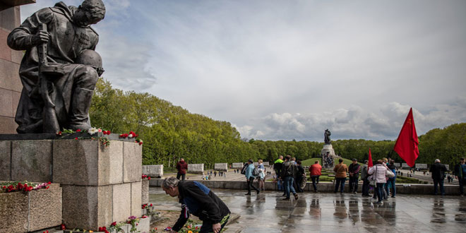 وقالت السفارة الروسية في بيان نشرته على صفحتها في موقع فيسبوك إنه بعد عدة ساعات من انتهاء مراسم الاحتفال بالذكرى الرابعة والسبعين للانتصار في الحرب الوطنية العظمى في المقبرة العسكرية السوفييتية في مدينة شبرمبرغ الألمانية قام أشخاص مجهولون بتدنيس قبور الجنود السوفييت الذين سقطوا في الحرب العالمية الثانية.