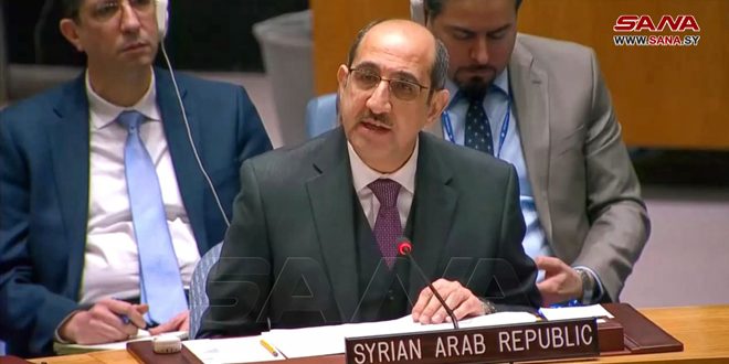 وأكد مندوب سورية الدائم لدى الأمم المتحدة أن توفير الولايات المتحدة وحلفائها الغربيين الحماية لـ (إسرائيل) مكنها من استمرار احتلالها للجولان السوري منذ العام 1967، ومنع المجلس من تحمل مسؤولياته حيال الاعتداءات الإسرائيلية المتكررة على الأراضي السورية والمرافق الحيوية فيها، والتي كان أحدثها الاعتداء على مطار دمشق الدولي مطلع العام الجاري، والذي أدى إلى وقوع شهداء وإصابات وخسائر مادية وخروج المطار من الخدمة.
