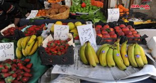 دمشق-سانا مشهد توزيع وعرض الخضار والفواكه والمواد الغذائية والألبان والأجبان والكونسروة والمربيات في سوق الجمعة …