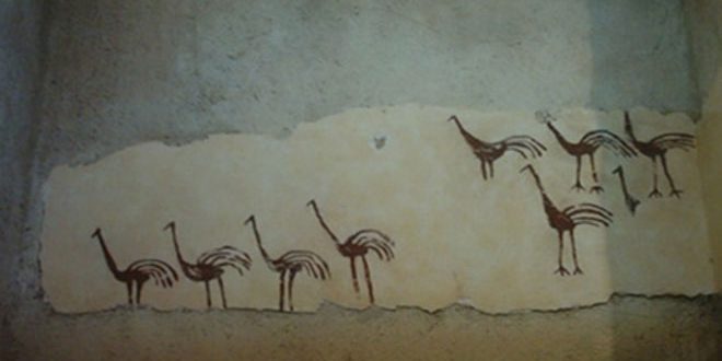 ويبين السيد في تصريحه لمندوب سانا أنه في موقع تل بقرص الأثري الواقع على الضفة اليمنى لنهر الفرات اكتشف في أرض أحد بيوت الموقع رسم باللون الأحمر لطيور الكركي على خلفية بيضاء ينسب إلى العصر النيوليتي ما قبل الفخار الحديث ما بين ثمانية آلاف وتسعة آلاف سنة وقد صور الطائر برأس أقرع وعنق ومنقار طويلين وساقين طويلتين ورفيعتين اضافة الى مجموعة أخرى من طيور كركي تقوم بعروض الغزل الراقصة.