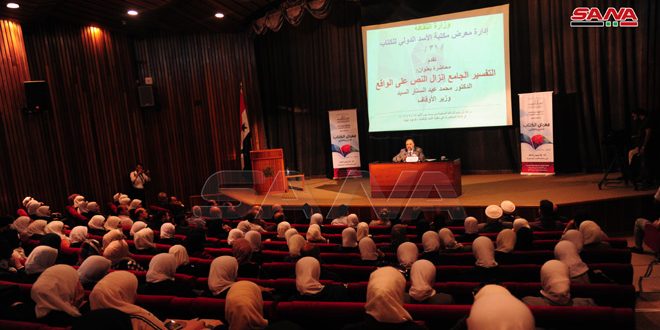 تضمنت المحاضرة التي ألقاها وزير الأوقاف الدكتور محمد عبد الستار السيد بعنوان “التفسير الجامع.. إنزال النص على الواقع” في مكتبة الأسد الوطنية على هامش معرض الكتاب الـ 31 محاور تتعلق بالفهم الصحيح للنص الديني بشكل يتناسب مع العصر الذي نعيشه.