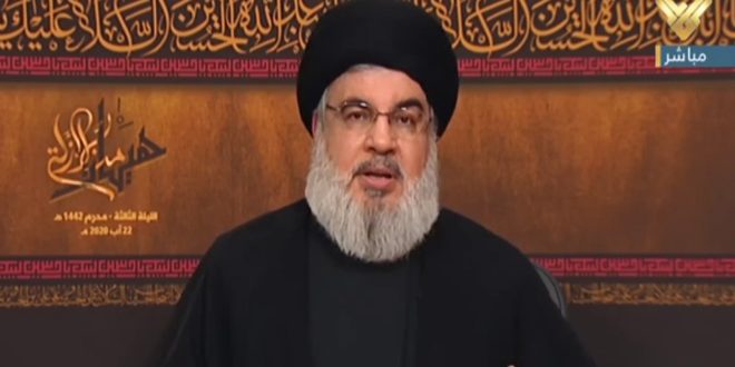 وخاطب الأمين العام لحزب الله الولايات المتحدة والدول الغربية قائلاً: “لماذا يحق لكم جميعا أن تتدخلوا في شؤون الدول وإلحاق الظلم بها ولا يحق لنا أو لغيرنا تقديم المساعدة لهذه الشعوب والدول المعتدى عليها والمسحوقة عظام أطفالها”.