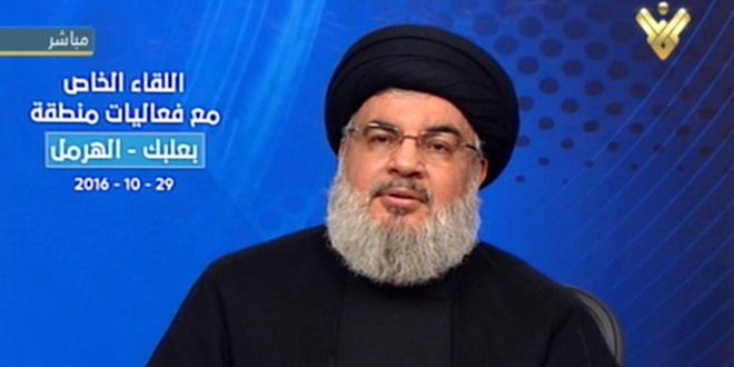 وقال السيد نصر الله في كلمة له اليوم خلال لقاء خاص مع فعاليات منطقة بعلبك الهرمل “إن الأمن هو مطلب بحد ذاته بمعزل عن النتائج المترتبة عليه والناس في منطقة بعلبك الهرمل يجب أن يعيشوا بأمن وراحة” لافتا إلى أن هذه المنطقة احتضنت المقاومة وضحت بخيرة علمائها في سبيل لبنان .