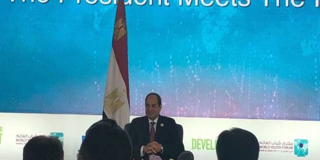 ونقل موقع اليوم السابع عن السيسي قوله خلال لقائه مع الاعلاميين المصريين والاجانب على هامش منتدى شباب العالم في مدينة شرم الشيخ المصرية ان “الإرهاب الموجود حالياً هو أخطر آفة وأخطر ما يهدد أمن واستقرار الدولة” داعيا إلى تضافر الجهود في مواجهة الإرهاب للقضاء عليه.
