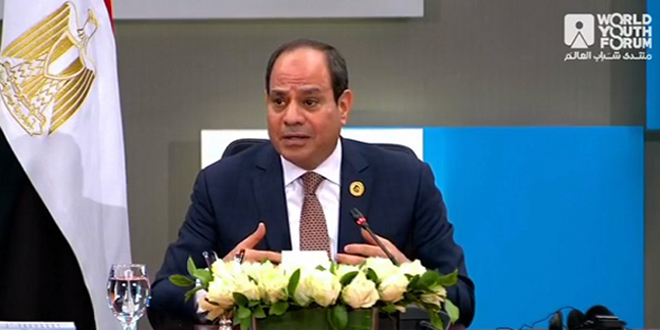 وأشار السيسي خلال كلمة له ضمن أعمال “منتدى شباب العالم” المنعقد حاليا بمدينة شرم الشيخ إلى أن البعض يعتقد أن مصالحه مرتبطة بتعكير حالة الاستقرار في سورية مشددا على ضرورة وجود اتفاقات شرعية بين الدول قبل اتخاذ أي دولة أي إجراء ضد دولة أخرى.
