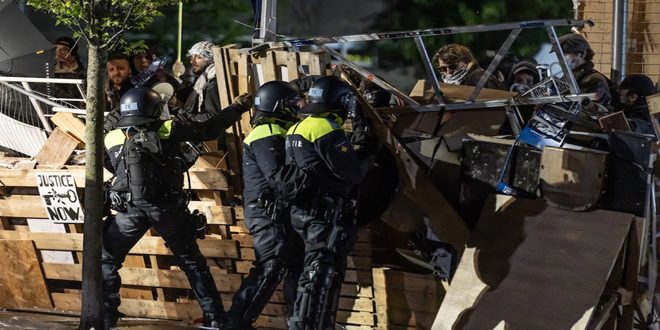 فضت الشرطة الهولندية بالقوة اليوم احتجاجات مؤيدة للشعب الفلسطيني في جامعة أمستردام، واعتقلت عشرات المتظاهرين الذين تمركزوا داخلها منذ أمس.
