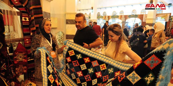 وأوضحت الحرفية جيداء أزرق أنها تشارك للمرة الثانية في معرض دمشق الدولي بمشغولات نسيجية قديمة وحديثة تعبر عن التراث السوري وتاريخه واستطاعت في ورشتها بحلب تدريب وتعليم الكثير من النسوة للحفاظ على هذه الحرفة.