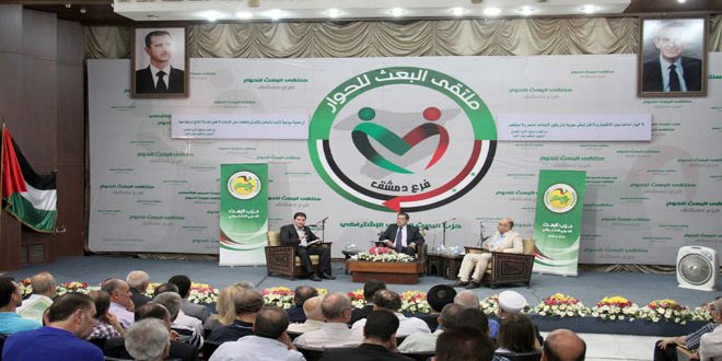ركز المشاركون في ملتقى البعث للحوار الذي أقامه اليوم فرع دمشق لحزب البعث العربي الاشتراكي تحت عنوان “الصمود السوري وأثره في إعادة تموضع القوى إقليميا ودوليا” على صمود الجيش العربي السوري والتفاف الشعب السوري حوله في مواجهة الإرهاب التكفيري المدعوم من دول غربية وإقليمية والأنظمة الخليجية.