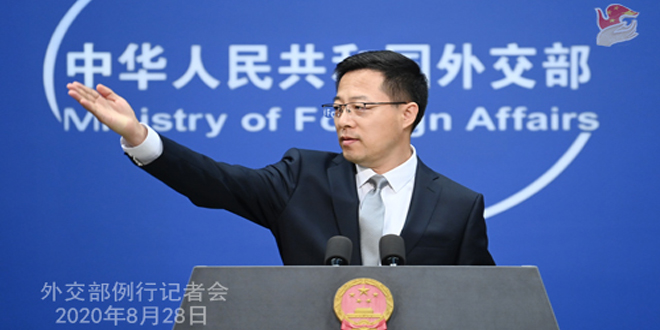 ونقلت وكالة شينخوا للأنباء عن المتحدث باسم وزارة الخارجية الصينية تشاو ليجيان قوله اليوم في مؤتمر صحفي: “يتعين على الولايات المتحدة التوقف عن التسبب في إثارة الاضطرابات وبث بذور الشقاق في بحر الصين الجنوبي وعليها لعب دور بناء في الحفاظ على السلام والاستقرار الإقليميين”.