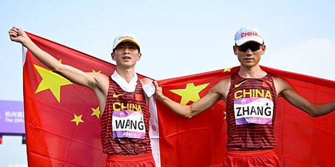 فازت الصين اليوم بالميداليتين الذهبية والفضية في سباق المشي لمسافة 20 كيلومتراً في دورة الألعاب الآسيوية التاسعة عشرة المقامة في مدينة خانجو الصينية.