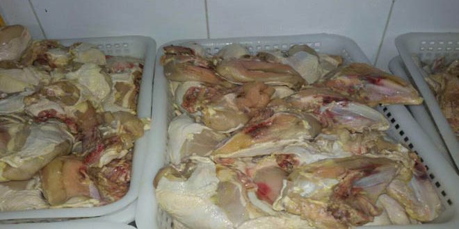 وبين سليمان الماغوط رئيس المفرزة في الضابطة أن “الكمية المضبوطة تقدر ما بين 2 إلى 3 أطنان من لحوم الفروج المهربة كانت معبأة بأكياس ومخزنة ضمن برادات حيث تم نزع اللحم عن العظام للمرة الثانية بطريقة غير صحية” إضافة للحوم تالفة غير صالحة للإستهلاك البشري يتم بيعها لبعض المطاعم لاستخدامها في بعض الوجبات.