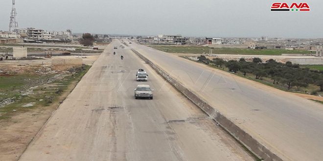 الطريق الدولي (حلب دمشق) عند سراقب بعد دحر الإرهاب المدعوم من أردوغان من المنطقة
