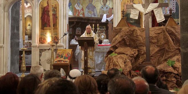 وعبر المصلون عن فرحتهم بانتصارات الجيش العربي السوري في الغوطة الشرقية معربين عن أملهم بأن يكون عيد قيامة السيد المسيح قيامة جديدة لسورية لتعود امنة مستقرة قوية صامدة بوجه كل المؤامرات التي تريد النيل من دورها المحوري في المنطقة.