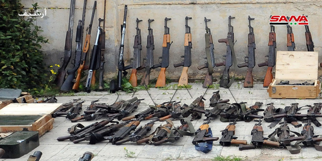 وذكر مصدر في الجهات المختصة لمراسل سانا أنه بالتعاون مع الأهالي تم “ضبط مستودع في قبو أحد المنازل في المنطقة بين قريتي خربة غزالة والغارية الشرقية يحوي رشاشات وبنادق آلية وذخائر متنوعة وأجهزة اتصال وقذائف هاون من عيارات مختلفة من مخلفات التنظيمات الإرهابية”.