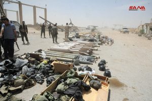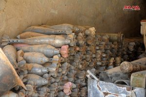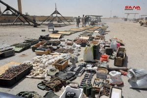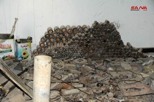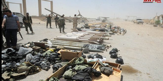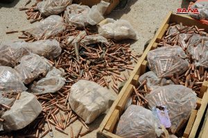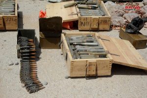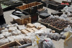 عثرت وحدات من الجيش العربي السوري اثناء تمشيط بلدة الضمير بعد إخراج إرهابيي “جيش الإسلام” إلى جرابلس على كميات كبيرة من الأسلحة والذخائر المتنوعة التي كان إرهابيو التنظيم قد أخفوها في أحد المستودعات في منطقة المحطة بالبلدة.