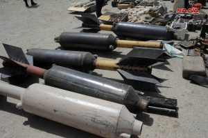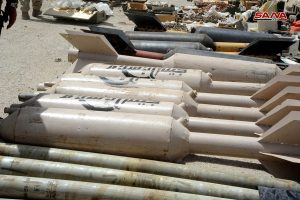 وذكر مراسل سانا الحربي من ريف دمشق أن وحدات من الجيش ضبطت أثناء تمشيطها بلدة الضمير كميات من الأسلحة والذخائر والعتاد الحربي لإرهابيي “جيش الإسلام” في منطقة المحطة جنوب البلدة شملت صواريخ محلية الصنع وصواريخ “غراد” وأعدادا كبيرة من القذائف الصاروخية والهاون وعشرات العبوات الناسفة وقذائف “آر بي جي” وعددا من صواريخ “تاو” الأمريكية والألغام والصفائح المتفجرة وأجهزة تفجير عن بعد ومنصات اطلاق صواريخ محلية الصنع.