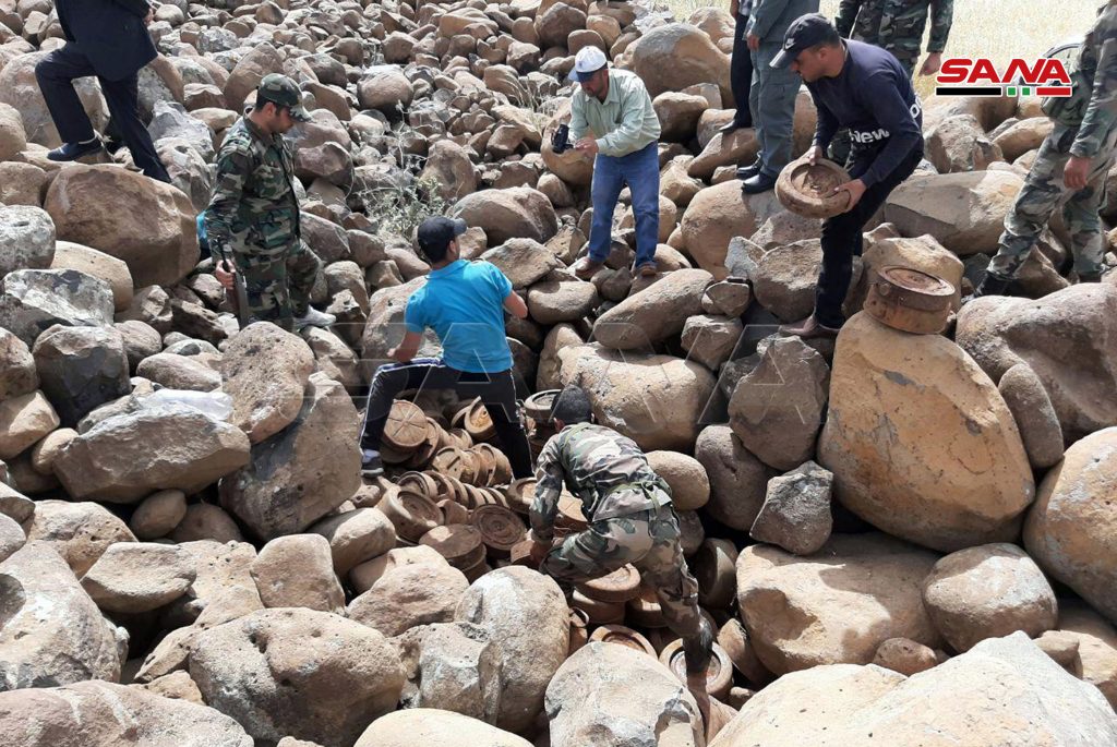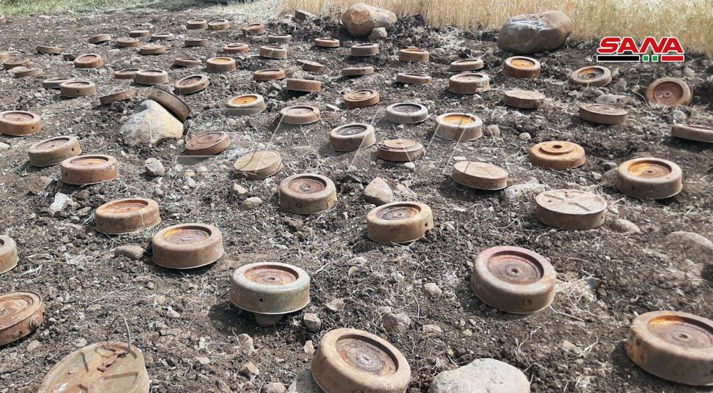 العثور على كميات كبيرة من الألغام الأمريكية والإسرائيلية الصنع من مخلفات الإرهابيين بريف القنيطرة