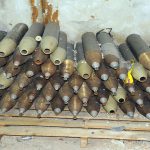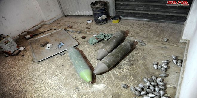 العثور على مواد متفجرة سعودية الصنع ومستودعات صواريخ وقذائف هاون وعبوات ناسفة في زملكا 2018-04-12 تصوير خلدون الخن