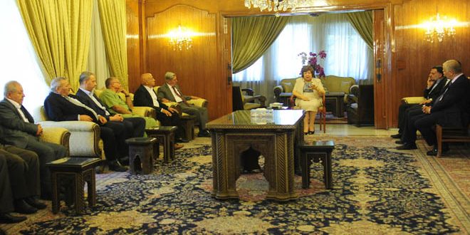 أكدت الدكتورة نجاح العطار نائب رئيس الجمهورية خلال لقائها اليوم وفدا أردنيا برئاسة المحامي سميح خريس يضم أعضاء من اتحاد المحامين العرب وأساتذة جامعيين ونوابا سابقين في البرلمان الأردني وإعلاميين وفعاليات سياسية أردنية أن صمود سورية قيادة وجيشا وشعبا كان الأساس في كل ما تم تحقيقه من نجاحات متتالية على أرض التضحيات التي رويت بدماء الشهداء من كل بقاع سورية.