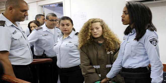 ووجه الاحتلال الإسرائيلي 12 تهمة إلى التميمي بينها “الاعتداء الشديد” على جنديين اسرائيليين لمجرد دفعها وصفعها اياهما في قريتها في 15 كانون الأول وذلك في تجاهل لحقيقة ان الطفلة الفلسطينية لم تكن تحمل أي سلاح فيما كان الجنديان مدججين بالسلاح.