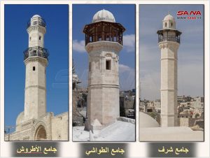 وبين المهندس أحمد أنه أشرف على أعمال الترميم لأبنية حلب الأثرية والتاريخية منذ تحرير المدينة عام 2017، واستمر بالعمل بعد حادثة الزلزال الأخير، وبدأ بأعمال الترميم من جامع الطواشي في حي الأصيلة، ثم جامع الأطروش الذي ما زال العمل فيه متواصلاً، وساحة باب الفرج وجامع برسين والكاتدرائية المارونية في ساحة فرحات، ثم جامع شرف.