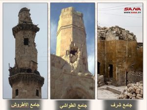 وأوضح رئيس فرع اتحاد الكتاب العرب بحلب نذير جعفر في تصريح لمراسلة سانا أنه تم ترميم أكثر من 17 مسجداً وكنيسة وعدد من البيوت العربية، لافتاً إلى أن المهندس أحمد حاز على جائزة الباسل للإبداع العلمي عن مشروعه الذي تناول كل ما تعرض إليه التراث العمراني من أضرار، حيث قام بتشكيل فريق عمل تطوعي من الشباب ليشرف على أعمال الترميم.
