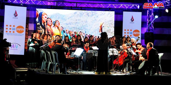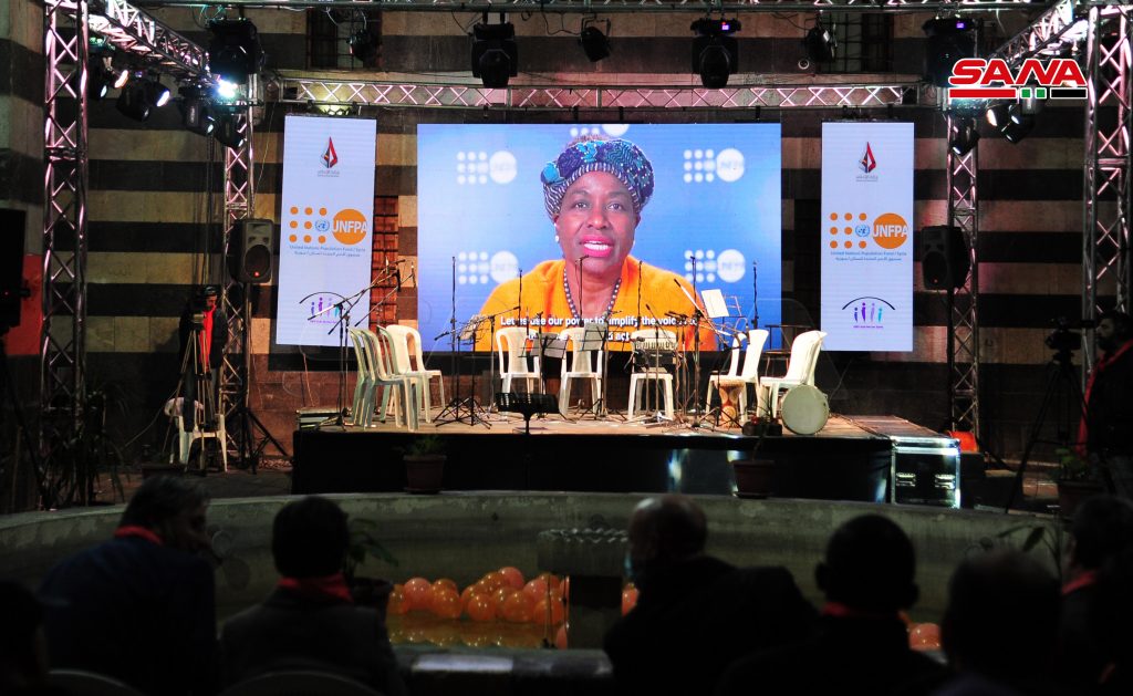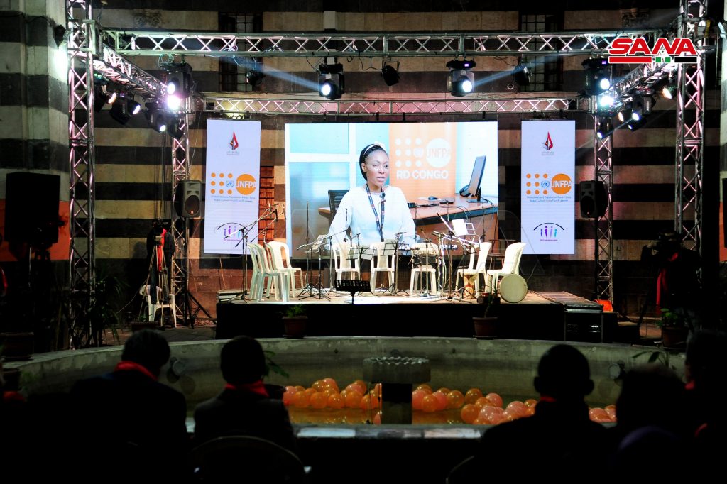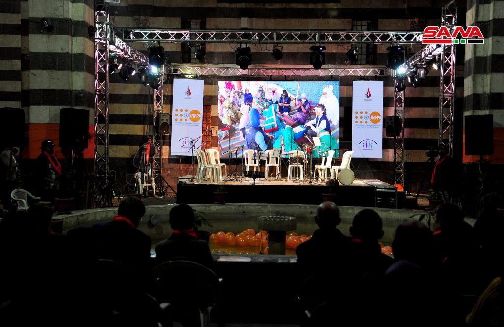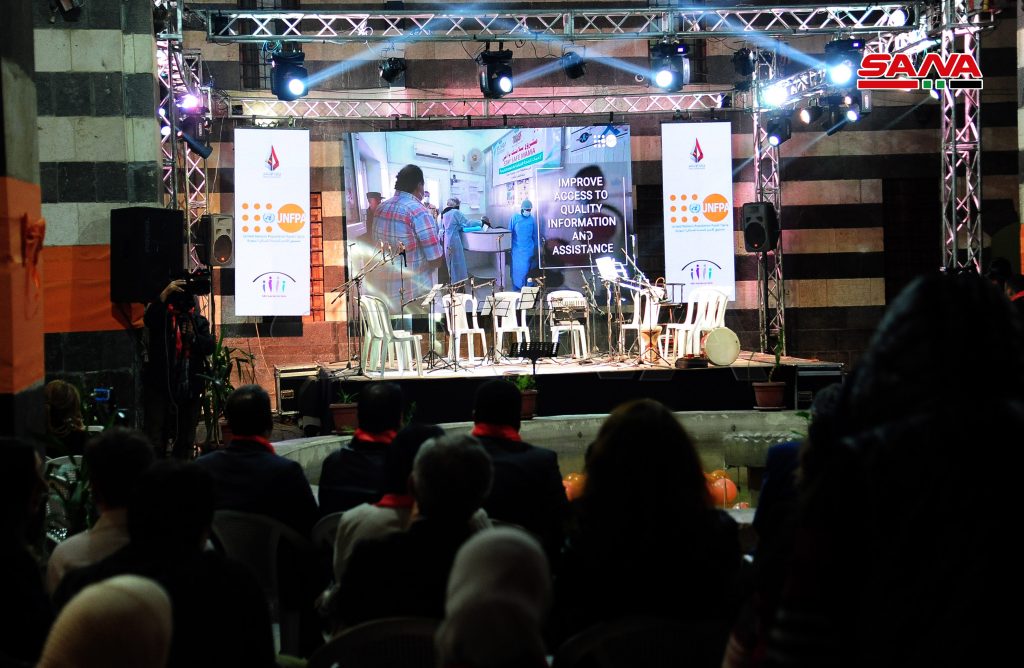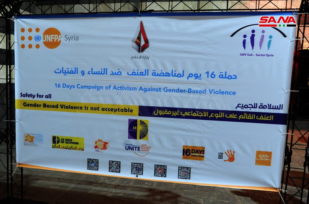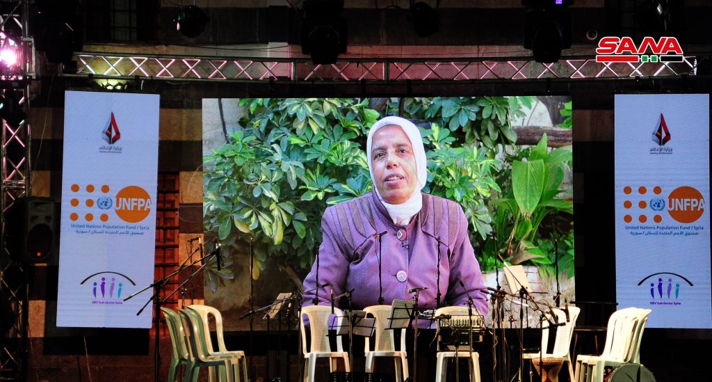 أقامت وزارة الاعلام وصندوق الأمم المتحدة للسكان في سورية أمسية ثقافية مساء اليوم في خان أسعد باشا بدمشق بمناسبة إطلاق حملة 16 يوما لمناهضة العنف القائم على النوع الاجتماعي تحت عنوان”السلامة للجميع.. العنف القائم على النوع الاجتماعي غير مقبول”.