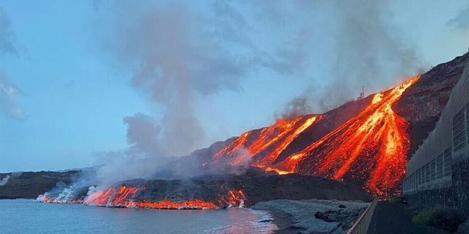 وكانت آلاف الأطنان من الحمم البركانية تدفقت من البركان منذ بدء ثورانه في الـ 19 من أيلول الماضي مدمرة مئات المنازل ومجبرة قرابة 6 آلاف شخص على النزوح.