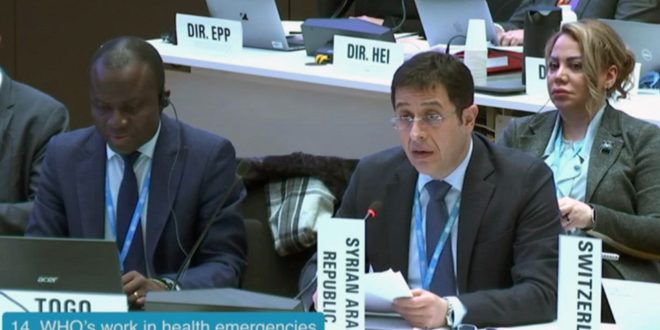 تتواصل أعمال الدورة الـ154 للمجلس التنفيذي لمنظمة الصحة العالمية المنعقدة في جنيف بسويسرا بمشاركة سورية، والمستمرة حتى الـ27 من الشهر الجاري.