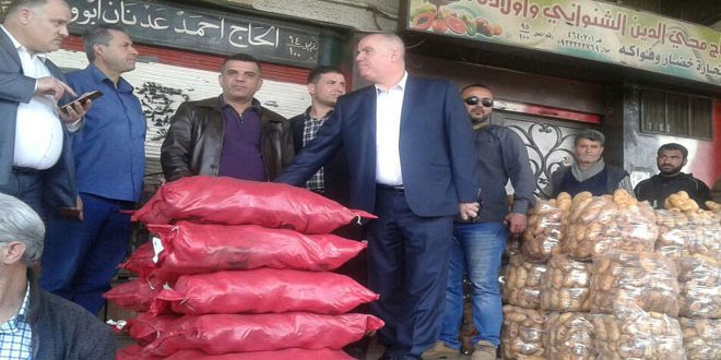 وقال في تصريح له خلال جولة قام بها ظهر اليوم في سوق الهال “أن هدف الجولة التأكد من وفرة مادة البطاطا وسبب بيعها من قبل بعض التجار سعر زائد تجاوز ربحه ما بين 250 و 300 ليرة سورية من دون مبرر وتبين أنه هناك من قام باحتكار هذه المادة ولم يقم بطرحها في الأسواق بقصد الربح الزائد”.