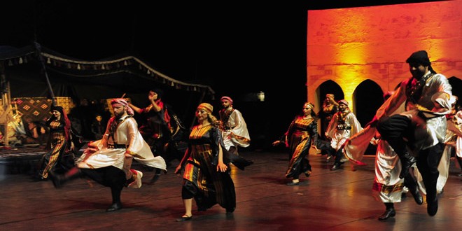 العرض الذي حظي بحضور كثيف في دار الأوبرا احتفالاً بالذكرى السبعين لجلاء المستعمر الفرنسي عن تراب الوطن بعث برسائل قوية عن متابعة مسيرة الأجداد الذين صنعوا الاستقلال ليكون الأحفاد على درب أسلافهم بتحقيق الجلاء المتجدد على يد جنود الجيش العربي السوري وتطهير الأرض السورية من دنس الإرهاب الأسود وليأتي عرض “قمر على الشرق” مسلطاً الضوء على العادات والقيم العربية الأصيلة والمتمثلة في الشجاعة والكرم والفروسية والاعتزاز بالأرض ودور المرأة العربية في الوقوف إلى جانب الرجل ناقلاً بذلك إرث وادي الفرات من تراث لا مادي ضمته رقصات وأغنيات وسوالف لطالما رددها أهل الجزيرة السورية عبر رواة ومحدثين وقصاص للفلكور الشعبي اللافت بتنوعه الحركي والغنائي كجسر يصل البادية بالقرى والحواضر.