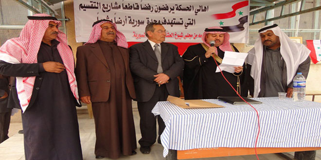 الفعاليات الاجتماعية والشعبية بالحسكة تعلن رفضها ما يسمى “فيدرالية في شمال سورية” ووقوفها ضد أي مخطط يمس وحدة سورية