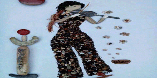 بالرسم المشغول بالحجارة والحصى والرمل الذي جلب من شواطىء وجبال اللاذقية تروي الفنانة سماهر محمود في لوحاتها حكاية المرأة السورية بقوتها وشجاعتها وتضحيتها وصبرها والتي تبدت بكل وضوح خلال سنوات الحرب الإرهابية على سورية.