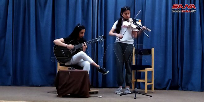 وعلى أوتار الكمان والغيتار عزفت الشابتان الشقيقتان الموهوبتان ساما وسارة العبد الرجب لحن النشيد العربي السوري وأغنية (نسم علينا الهوى) .