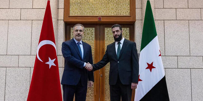 دمشق-سانا استقبل القائد أحمد الشرع وزير الخارجية التركي هاكان فيدان في دمشق.