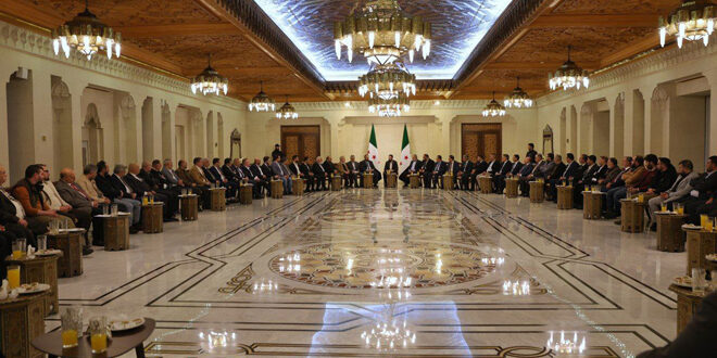 دمشق-سانا عقد القائد أحمد الشرع اجتماعاً مع رجال الأعمال والصناعيين من مدينتي حلب وإدلب بحضور وزير الاقتصاد.